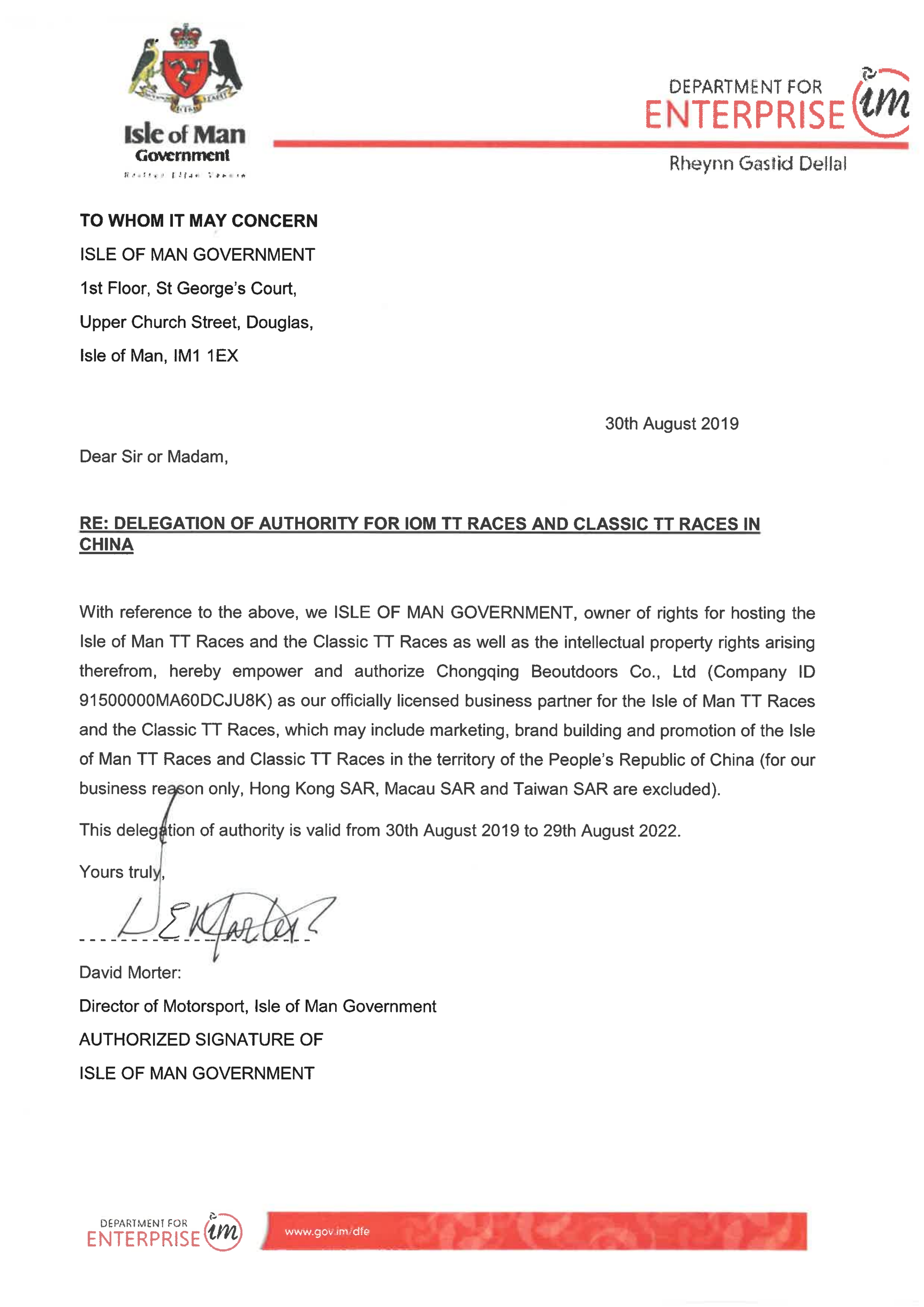 2019年(nián)曼島TT賽事(shì)期間(jiān),重慶蟲旅公司總經理(lǐ)攜曼島TT項目經理(lǐ)及多(duō)位同事(shì)奔赴曼島, ₩對(duì)賽事(shì)進行(xíng)現(xiàn)場(chǎng)考察。并與T<∞T官方進行(xíng)洽談,簽約本公司關于TT賽事(shì)中國(gγ uó)大(dà)陸官方代理(lǐ)等事(shì)宜。←¶↔β